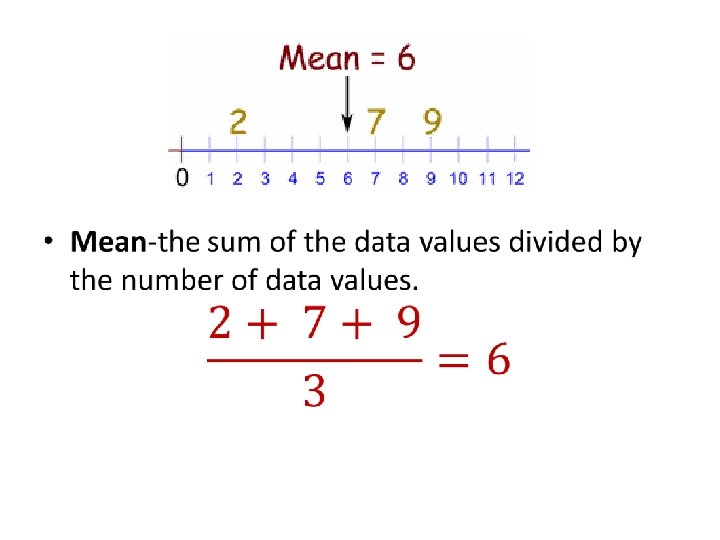 • Median - middle number when data values are written in order (when there is an odd number of data values). - the mean of the two middle ordered numbers when there is an even number of data values.