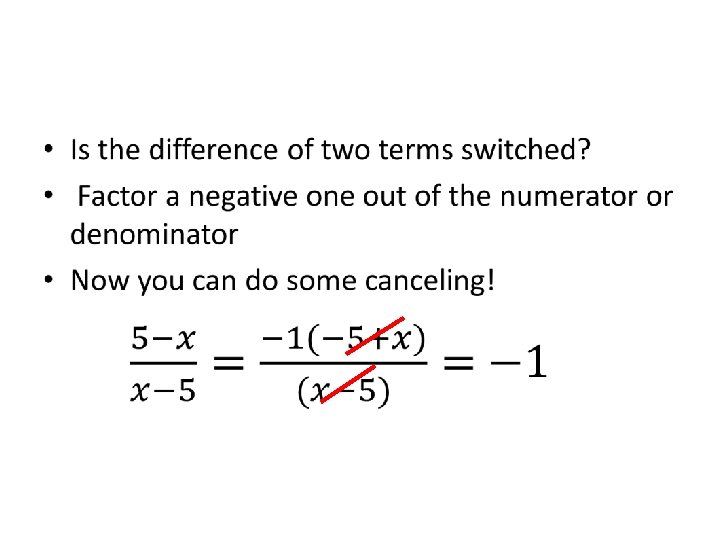 • A possible way to eliminate fractions in an equation. Factor and reduce the fraction so the denominator is one
