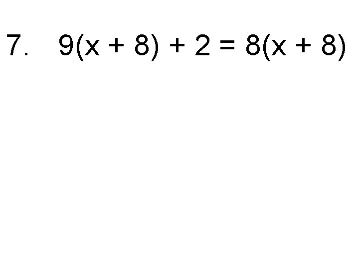 7. 9(x + 8) + 2 = 8(x + 8) 9 x + 72 + 2 = 8 x + 64 9 x + 74 = 8 x + 64 -8 x x + 74 = 64 -74 x = -10