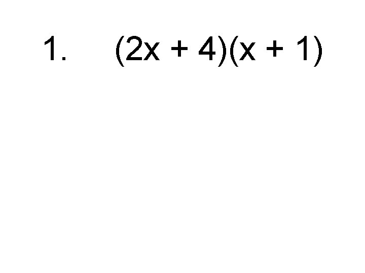 1. (2 x + 4)(x + 1) Using FOIL: 2 x 2 + 2 x + 4 2 x 2 + 6 x + 4