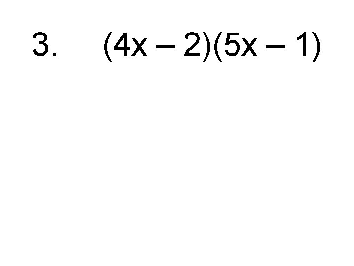 3. (4 x – 2)(5 x – 1) Using FOIL: 20 x 2 – 4 x – 10 x + 2 20 x 2 – 14 x + 2