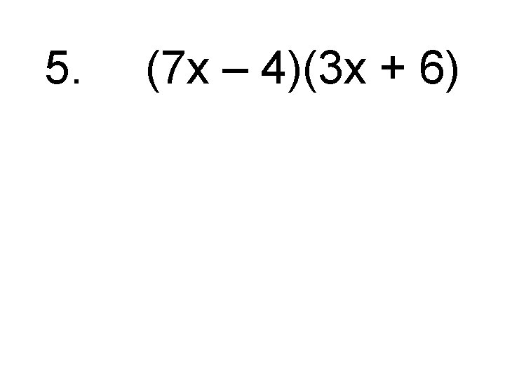 5. (7 x – 4)(3 x + 6) Using FOIL: 21 x 2 + 42 x – 12 x – 24 21 x 2 + 30 x – 24