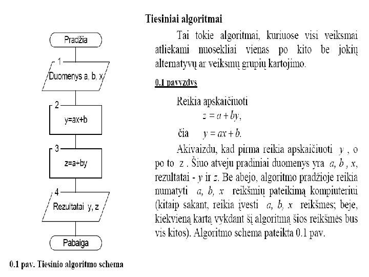 Plačiausiai paplitę du grafiniai algoritmų vaizdavimo būdai: 1. Algoritmų schemos. 2. Struktūrogramos.