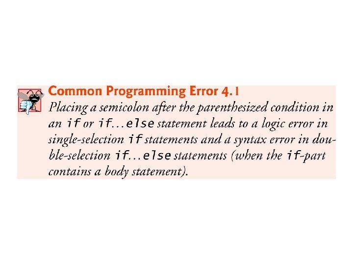 4. 4. 2 Selection Statements Syntax for if—else statements: if (condition) action 1; else action 2; Or as before, if there are several actions, or for clarity: if (condition) action 1; else { action 2; } © 1992 -2017 by Pearson Education, Inc. All Rights Reserved.