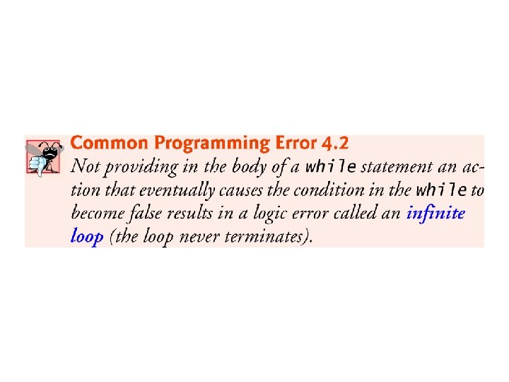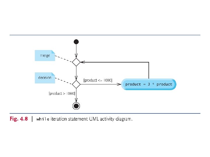 4. 8 while Iteration Statement (cont. ) Consider a program segment that finds the first power of 3 larger than 100. When the following while iteration statement finishes executing, product contains the result: int product = 3; while (product <= 100) { product = 3 * product; } © 1992 -2017 by Pearson Education, Inc. All Rights Reserved.