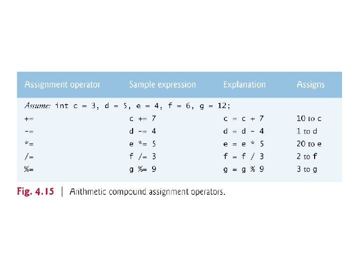 4. 10. 4 Converting Between Fundamental Types Explicitly and Implicitly The calculation now consists of a floating-point value divided by the integer grade. Counter. ◦ The compiler knows how to evaluate only expressions in which the operand types of are identical. ◦ Compiler performs promotion (also called implicit conversion) on selected operands. ◦ In an expression containing values of data types int and double, C++ promotes int operands to double values. Cast operators are available for use with every data type and with class types as well. © 1992 -2017 by Pearson Education, Inc. All Rights Reserved.