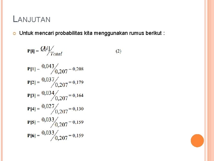 LANJUTAN Untuk mencari probabilitas kita menggunakan rumus berikut :