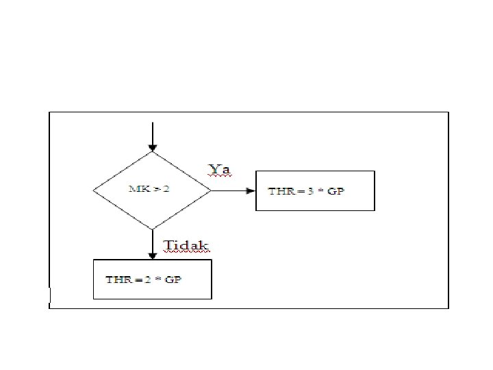 Contoh : • Untuk pegawai yang telah bekerja lebih dari 2 tahun maka akan mendapat Tunjangan Hari Raya sebesar 3 kali lipat dari gaji pokok. Sebaliknya masa kerja sama dengan atau kurang dari 2 tahun mendapat Tunjangan Hari Raya sebesar 2 kali dari gaji pokok.