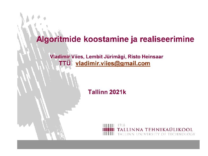 ALGORITMIDE KOOSTAMINE 1 Mis on algoritm Milleks seda