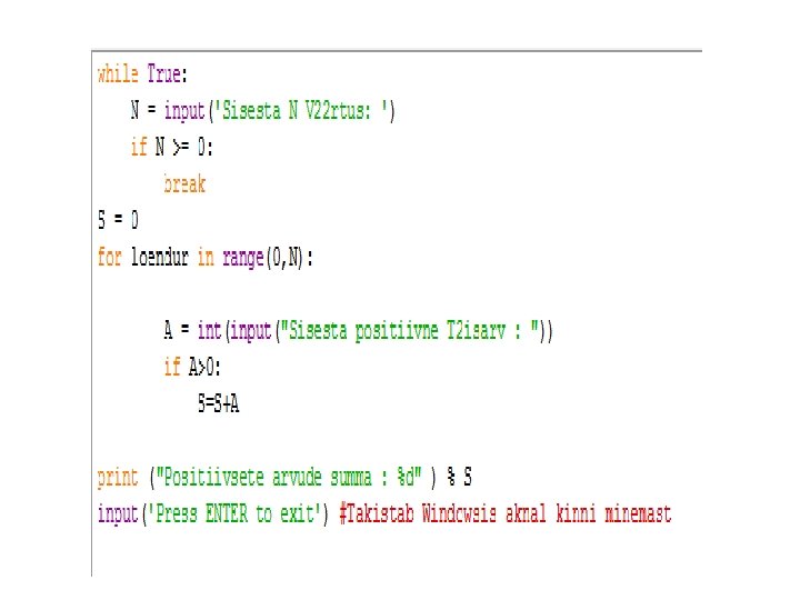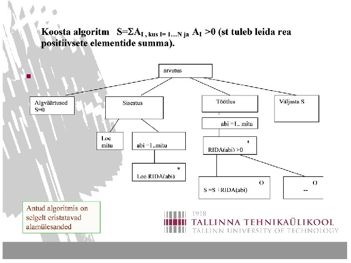 ALGORITMIDE KOOSTAMINE 4 Algoritmi esituse graafilised vahendid 3 (näide: reas positiivsete arvude summa leidmine)