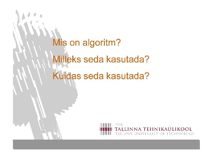 ALGORITMIDE KOOSTAMINE 1 Mis on algoritm? Milleks seda kasutada? Kuidas seda kasutada?