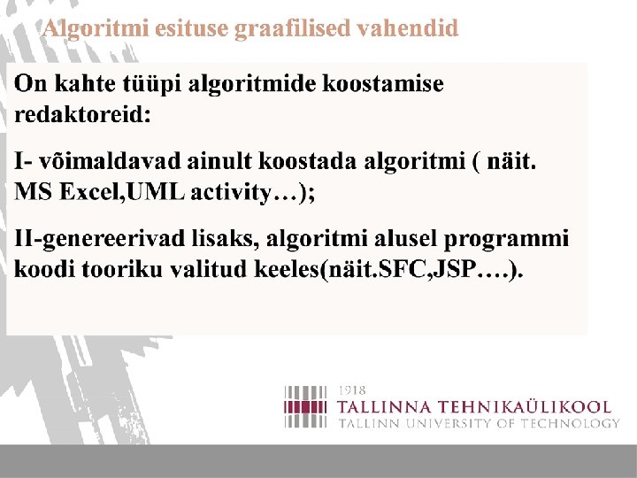 ALGORITMIDE KOOSTAMINE 3 ALGORITMIDE VISUALISEERIMINE 1 Algoritmi esituse graafilised vahendid ( vooskeem)