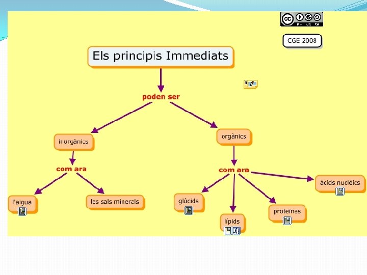 L’AIGUA �Entre el 55 i el 60% del nostre cos és aigua �Les nostres cèl·lules estan formades principalment d’aigua. �Algunes verdures contenen un 90% d’aigua �Funció reguladora (dissolvent i transportadora)