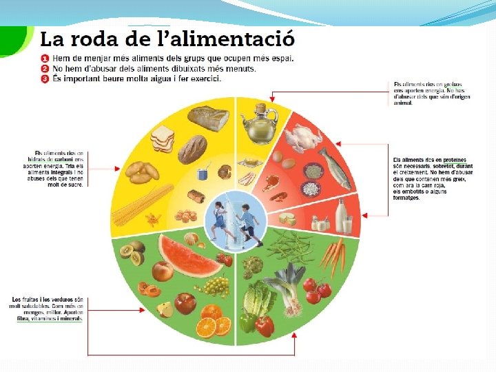 DIETA Una dieta correcta ha de contenir quantitats adequades de proteïnes, lípids, glúcids, vitamines i minerals. La base d'una bona nutrició resideix en l'equilibri, la varietat i la moderació de la nostra alimentació.