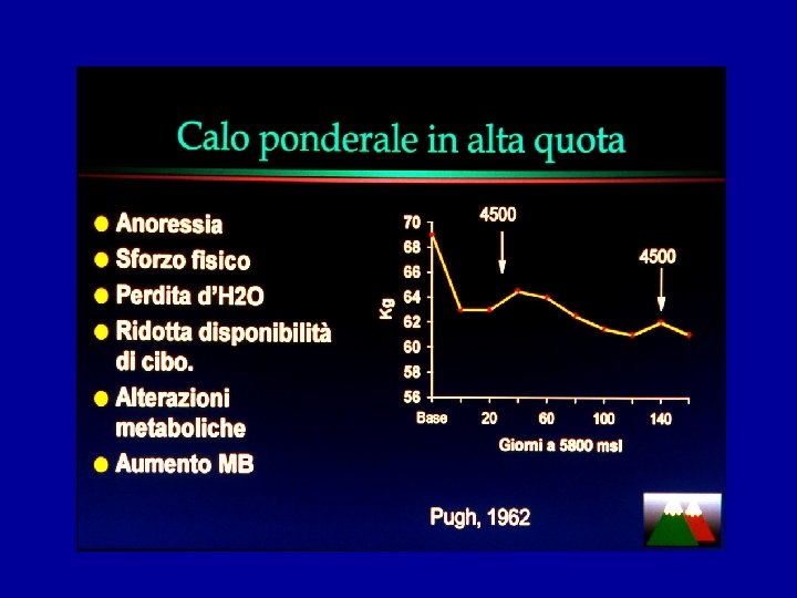 Perdita di peso - Aumento del metabolismo basale - Aumento dello sforzo fisico - Cibo non sempre appetibile - Ridotto appetito - Ridotta percezione del gusto - Aumento della sazietà (ci si sente subito pieni) - Male acuto di montagna - Disidratazione