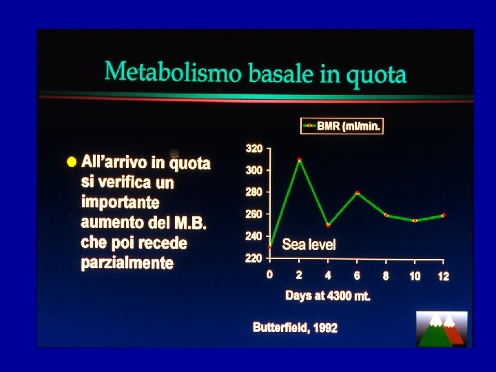 Caratteristiche fisiche dell’ambiente montano • Ridotta pressione barometrica • Ridotta pressione parziale d’ossigeno • Ridotta temperatura • Aumentato irraggiamento solare • Minore densità dell’aria • Minore umidità dell’aria