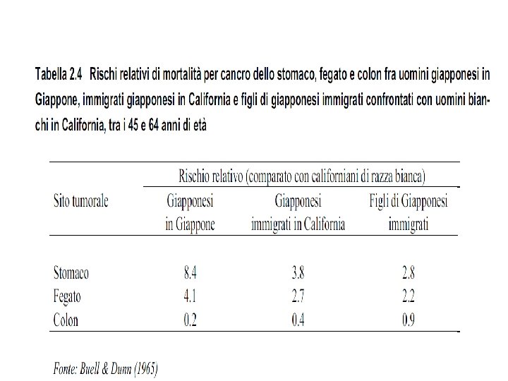 Da studi effettuati sugli immigrati giapponesi negli stati uniti si e’ visto che il tasso di cancro colo-rettale incrementata gradualmente dopo l’emigrazione fino a raggiungere il livello tipico della popolazione bianca statunitense.