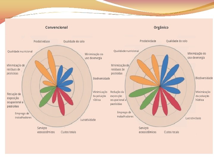 Orgânico x Convencional No artigo Organic agriculture in the 21 st century, os pesquisadores John Reganold e Jonathan Wachter, do Departamento de Agronomia e Ciências do Solo da Washington State University, compilam num belíssimo diagrama —no formato de uma flor — anos de estudos comparativos entre o manejo convencional e o manejo orgânico. … Publicado na revista Nature Plants