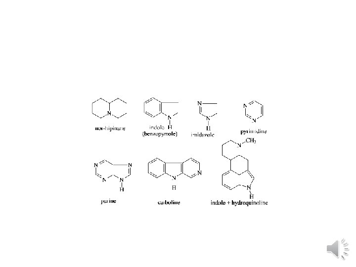 Alkaloids • • • Structure and classification of alkaloids (1) Phenylethyl amine alkaloids (2) Pyrrolidine alkaloids (3) Pyridine or piperidine alkaloids (4) Pyridine pyrrolidine alkaloids (5) Tropane alkaloids (6) Quinoline alkaloids (7) Isoquinoline alkaloids (8) Phenanthrene alkaloids (9) Indole alkaloids (10) Tropolone alkaloids
