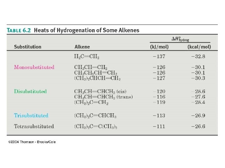 Hydrogenation Data Helps to Determine Stability DHhydrogenation of Alkenes