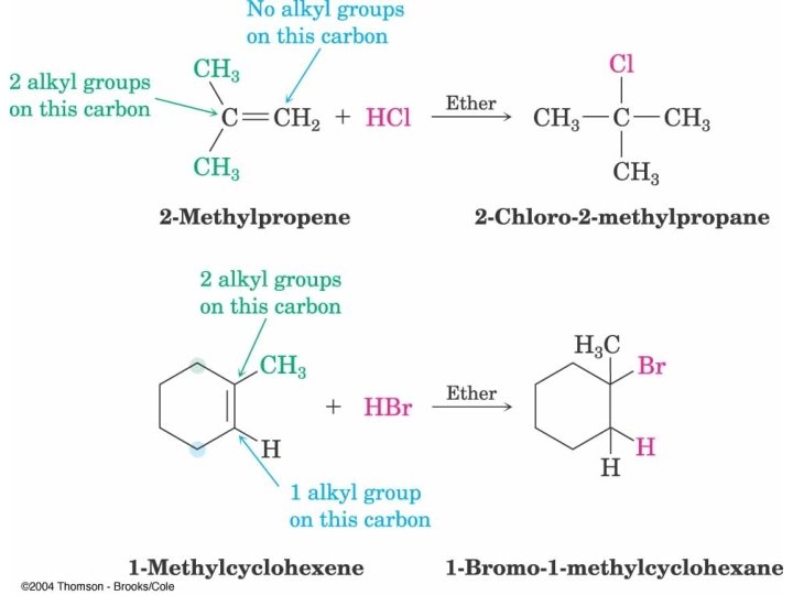 Markovnikov’s Rule The addition of H-X across a double bond results in the more highly substituted alkyl halide as the major product.