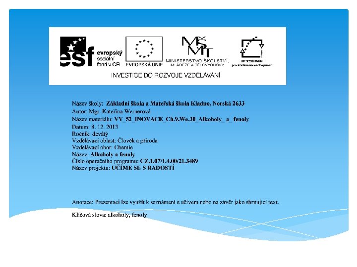 Použité zdroje: http: //cs. wikipedia. org/wiki/Soubor: Methanol-3 Dvd. W. png http: //cs. wikipedia. org/wiki/Soubor: Ethanol-3 Dvd. W. png http: //cs. wikipedia. org/wiki/Soubor: Phenol_chemical_ structure. png http: //cs. wikipedia. org/wiki/Fenol http: //cs. wikipedia. org/wiki/Ethanol http: //cs. wikipedia. org/wiki/Soubor: Ethylene-glycol-3 D -vd. W. png http: //cs. wikipedia. org/wiki/Alkoholy