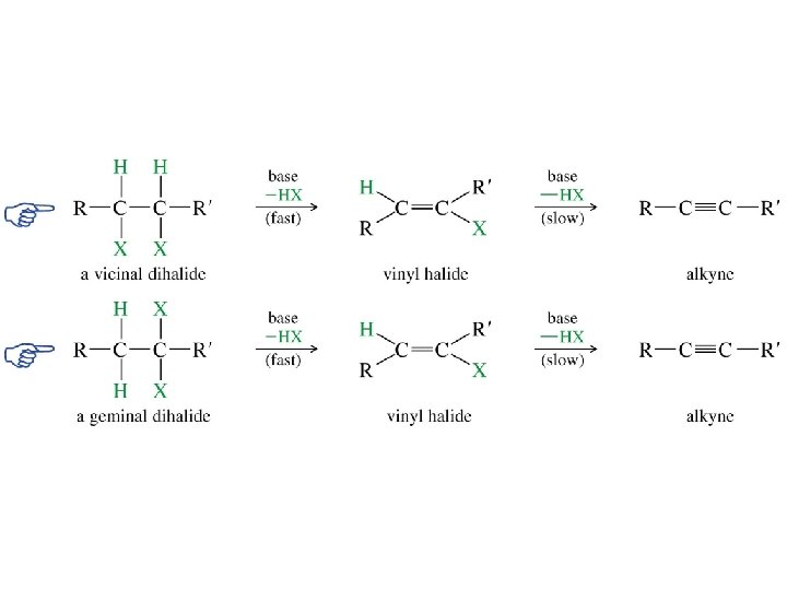 Geminal dihalide Alkyne (CH 3)3 CCH 2—CHCl 2 (CH 3)3 CCH (CH 3)3 CC CHCl CH H 2 O (CH 3)3 CC Na. NH 2, NH 3 (slow) CNa Na. NH 2, NH 3 (slow) Na. NH 2, NH 3 (fast)