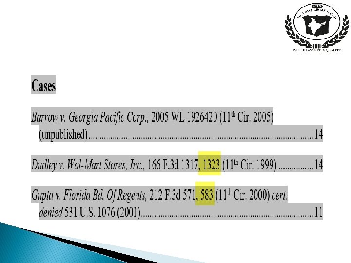 Troubleshooting your TOA Problem 1: Incorrect citations For instance, say you've spotted a pin cite within your Table of Authorities: