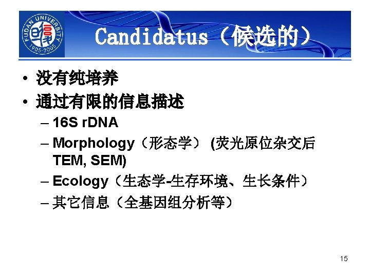 微生物命名(Nomenclature)流程 分�学的提� (新的分��位,新的�合) IJSEM中�表 其它�志�表 作者委托 IJSEM Notification List in IJSEM Validation List in IJSEM 14