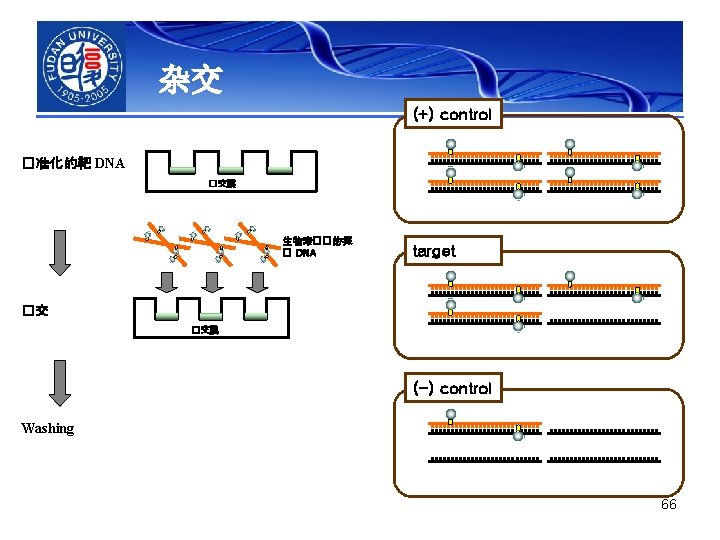 靶 DNAs的固定 感�趣的菌株 完全无关的 e. g. 相关微生物 E. coli Brevibacterium casei DSM 20657 T AJ 251418 Target Probe: strain of interest 95 (+) control 靶 97 (-) control 99 �性 91 83 �� DNAs Brevibacterium aureum Enb 15 AY 299092 Brevibacterium aureum Enb 17 AY 299093 Brevibacterium linens DSM 20425 T X 77451 Brevibacterium iodinum NCDO 613 T X 76567 0. 01 固定到膜上 洗出未�合的 DNAs washing 63