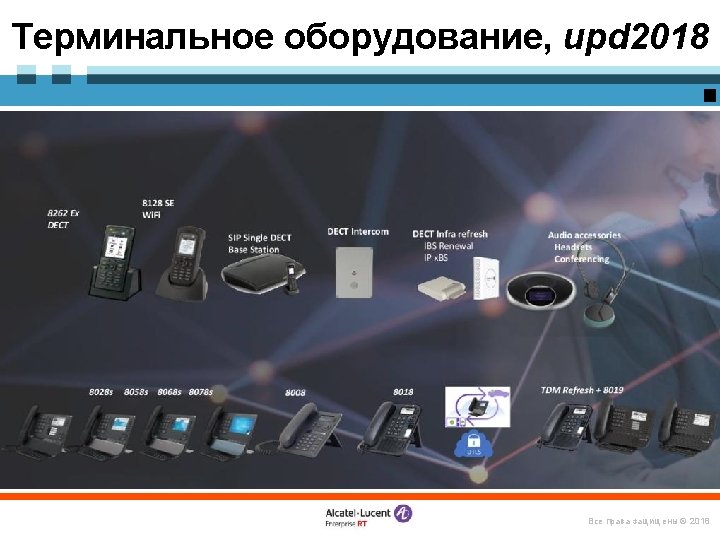 Терминальное оборудование Аналоговые телефоны Аналог Digital: 80 х9 Digital DECT: GAP+ DECT GAP Soft. Phone DECT PC/MAC Wi. Fi IP-terminals: IP Touch Wi. Fi Other IP: H. 323, WLAN SIP-endpoints SIP 4 G Anymobile Все права защищены © 2018