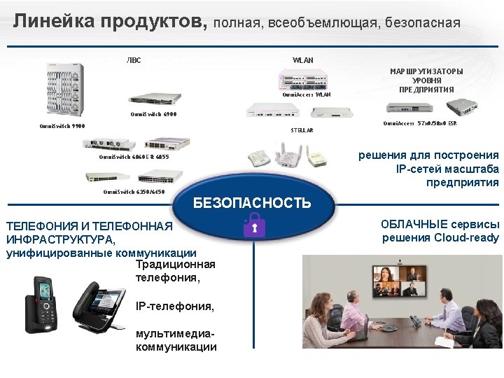 «Конструктор» Omni. PCX Enterprise Логические элементы и ПО Alcatel Omni. Vista 8770 -- управление Open. Touch – система мультимедиакоммуникаций Серверы и ПО Call Server Media Gateways IP CS Crystal RM 1 Alcatel Application Partner Program ЦОВ Omni. Touch/Altitude Appliance Server (INTELbased) RM 3 Виртуализация (VMware) M 2 M 3 IP – инфраструктура Терминалы Все права защищены © 2018