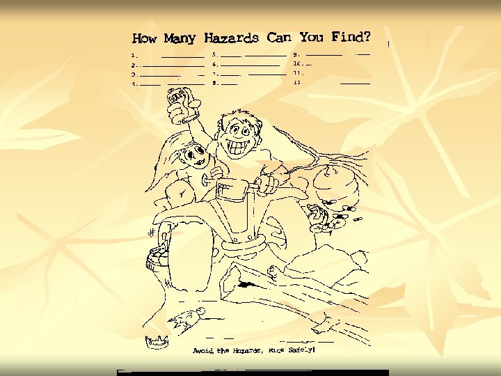 The “Do-Not” part n n No children and teenagers under the age of 18 Children do not always have the weight, limb size , skill and judgment to control an ATV safely