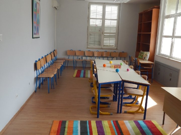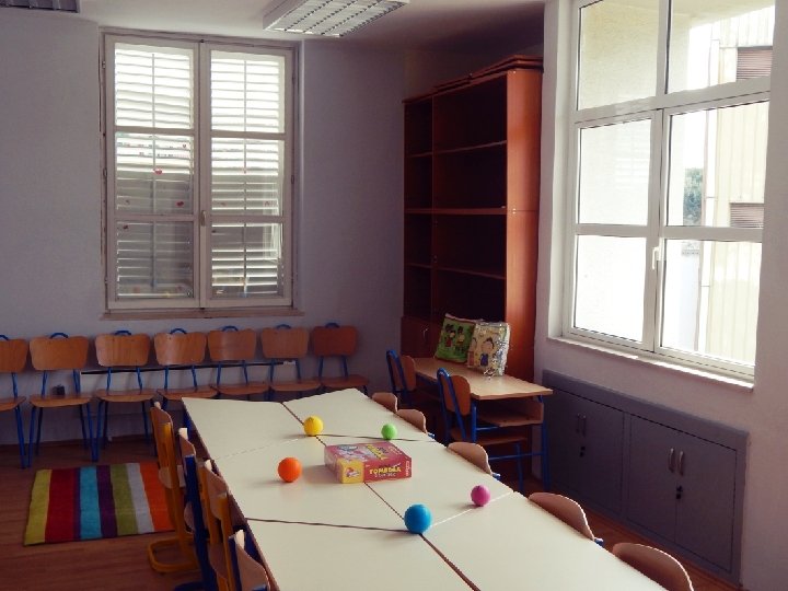 • Sadržaj kreativne sobe: -pametna ploča -kutak za odmor -kutak za izbacivanje negativne energije -stolovi za kreativne radionice -didaktičke igre -literatura