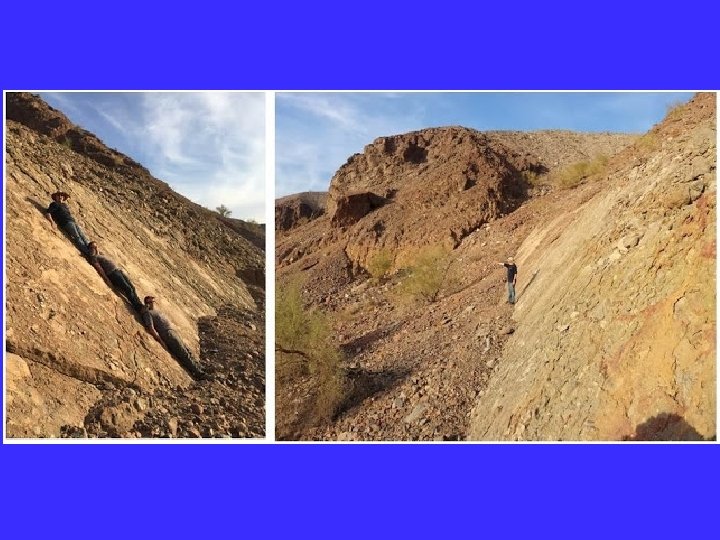 Scarp Morphology and Local Tectonics Baja, Death Valley and Panamint Valley are currently oblique systems (normal + dextral slip). All had an earlier history of high magnitude extension, associated with low angle normal faults and metamorphic complexes (footwall rocks exhumed from great depth) Releasing bends result in high magnitude extension defined by antiformal culminations (turtlebacks), very low elevations (Badwater), and purely normal faults. Releasing bends at Canon Rojo, Mormon Point and elsewhere. Scarp height for a given amount of strain increases as a function of the strike of the fault relative to the local sense of slip. Scarp morphology depends on the history of earthquakes in a particular region. Large bedrock scarps erode to form faceted spurs, and exposed planar fault surfaces with slickenlines, etc.