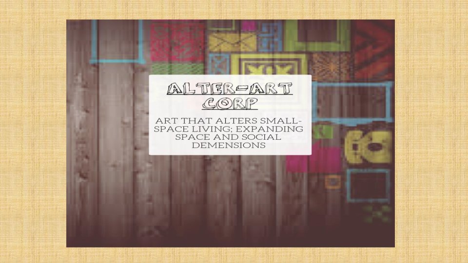 Why Alter-Art? v. Alter-Art means Alternative Art v. As our global population has increase living spaces have decreased in size. The majority of nations globally have limited living space. By creating a product that allows for a means of utilizing space available for healthy family and social gatherings in an artistic and globally conscious way the product could create both a global economy and appeal to the social enterprise market and its customers as well as the communities it produce and working in.