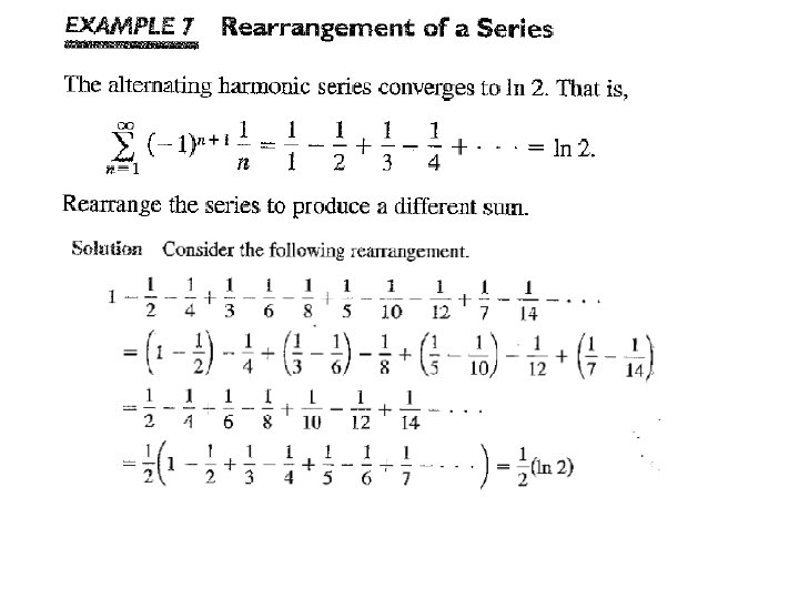 Alternating Series Good news! The signs of the terms alternate. Alternating Series Test If the absolute values of the terms approach zero, then an alternating series will always converge! example: This series converges (by the Alternating Series Test. ) This series is convergent, but not absolutely convergent. Therefore we say that it is conditionally convergent.