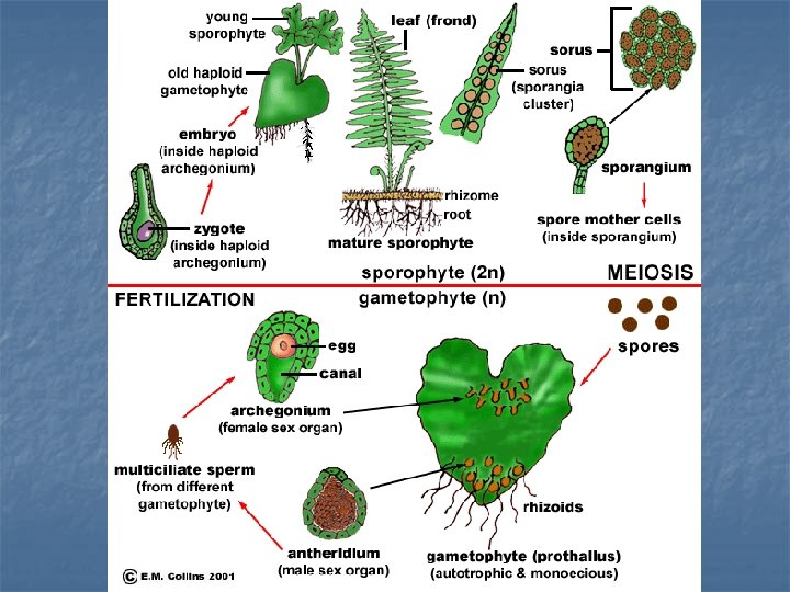 Life cycle of Ferns n n The ____phyte sporo is dominant. Ferns fronds grow rhizomes from ______ (underground stem)