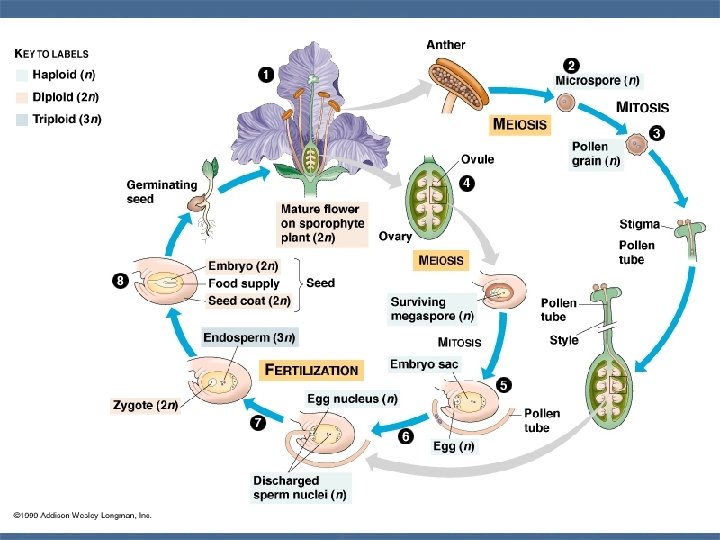 Life cycle of Angiosperms n Like conifers, gametophyte generation is contained within sporophyte generation Panama’s national flower