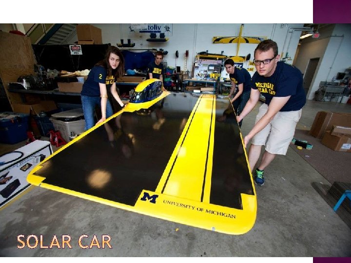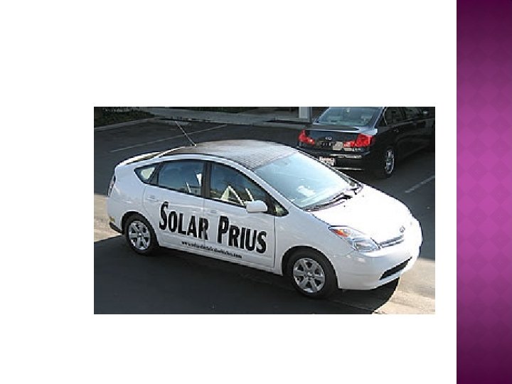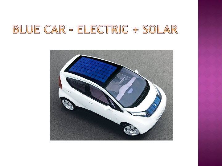 • A solar car is a light weight, low power vehicle designed and built with a single purpose in mind – racing. • They have limited seating they have very little cargo capacity, and they can only be driven during the day.