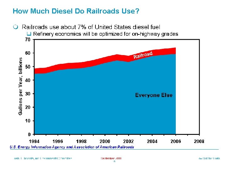 Context * Railroad’s use a small fraction of diesel fuel production » In general, they will use what everyone else is using » It is what is in the pipeline * Same story for marine?