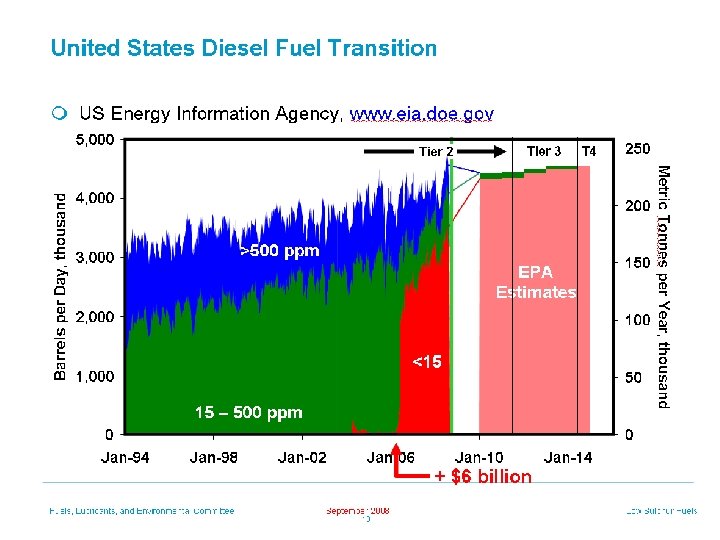 EPA Diesel Fuel Regulations * Nonroad diesel not regulated by EPA until June 2007. * EPA Nonroad diesel regulations » Including locomotive and marine diesel – nationwide » Effective June 1, 2007 – 500 ppm Sulfur maximum – Cetane > 40 – Aromatics < 35% volume * June 2012 » Locomotive and marine diesel will be ULSD, 15 ppm max Sulfur * The above sulfur limits do not apply to HFO used in Category 2 and 3 marine diesel engines.