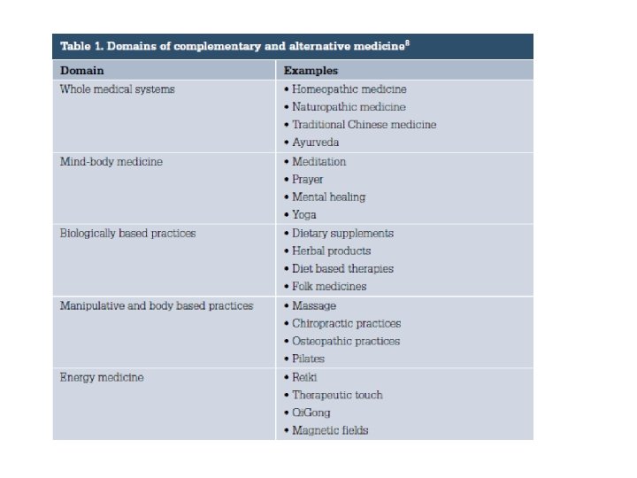 Understand some Definitions • “Complementary Medicine is Used Together With Conventional Medicine. ” • “Alternative Medicine is Used in Place of Conventional Medicine. ”