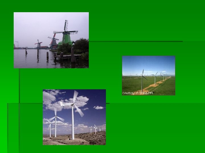Energia wiatru § Odnawialne źródło energii, które powstaje dzięki podmuchom wiatru § Historia tego źródła energii sięga aż do kodeksu Hammurabiego. Prawdopodobnie były one wykorzystywane do pompowania wody § Za przemianę energii wiatru w mechaniczną odpowiada turbina § Dzisiaj wiatraków używamy do przemiany energii wiatru w energię elektryczną