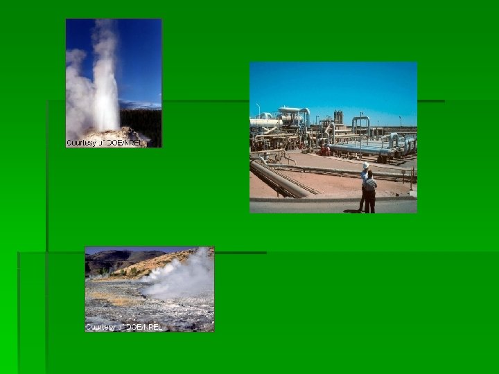 Energia geotermiczna § Odnawialne źródło energii, które wykorzystuje ciepło wód z wnętrza ziemi § Jest zaliczane jako odnawialne źródło energii, ponieważ wody te ogrzewają się dzięki jądru ziemi, którego ciepło nie zapowiada się na razie skończyć § Jest wykorzystywana jako źródło ciepła i ciepłej wody