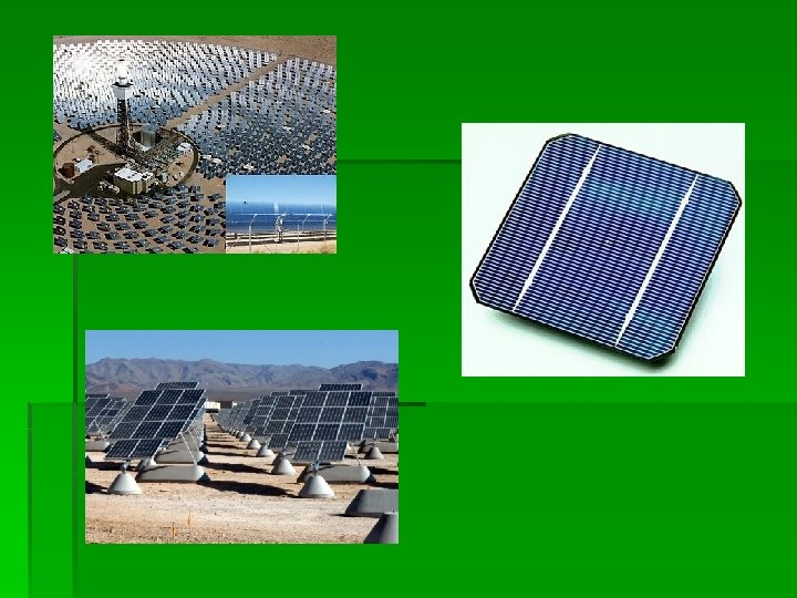 Energia słoneczna § Jest to źródło energii odnawialnej, które wykorzystuje baterie słoneczne do przemiany promieniowania słonecznego w np. energię elektryczną (można też je wykorzystać do uzyskania energii cieplnej) § Modne i łatwo dostępne alternatywne źródło energii § Baterie słoneczne montuje się na dachach domów, ale są także przemysłowe elektrownie słoneczne