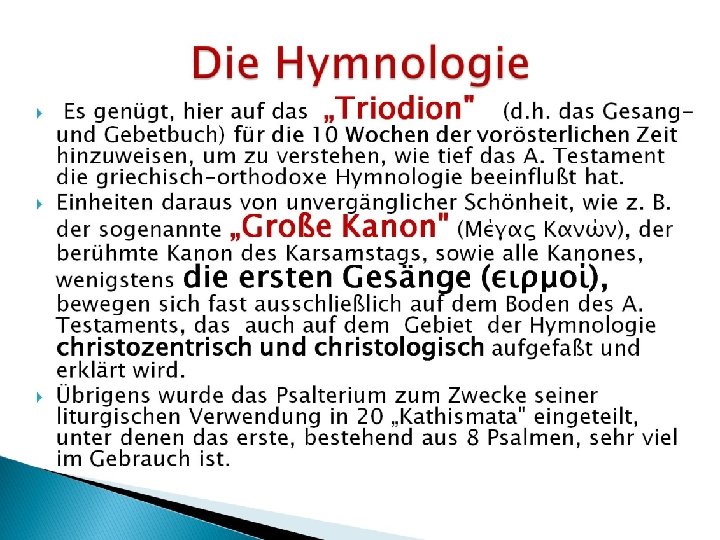 Das Alte Testament in der liturgischen Praxis der orthodoxen Kirche • 1. Die Psalmen und die Propheten in der „Grossen Woche“ (Μεγάλη Ἑβδομάς) • 2. Manche Hymnen mit „antijüdischem“ Inhalt • 3. Die Nichtverwendung der Torah • 4. Die christologische Auslegung des AT • 5. Die Popularität des Psalters