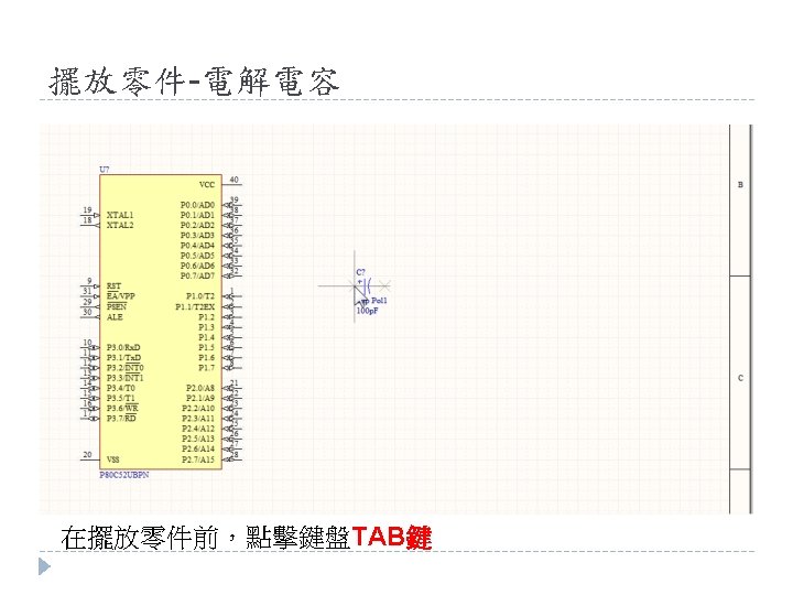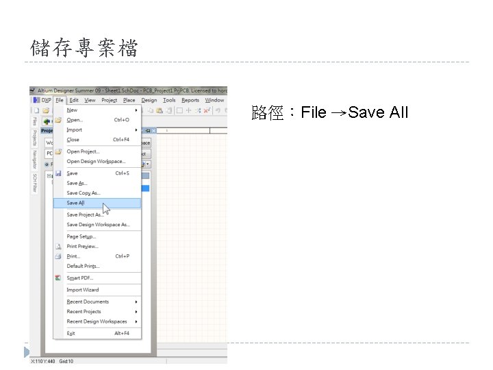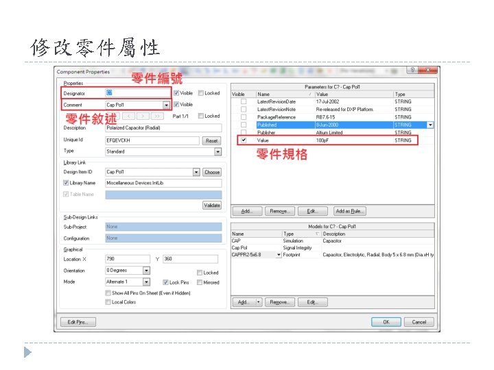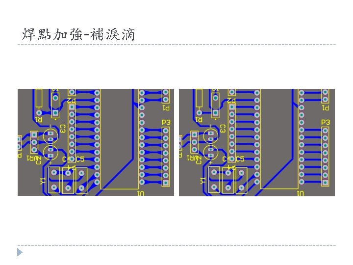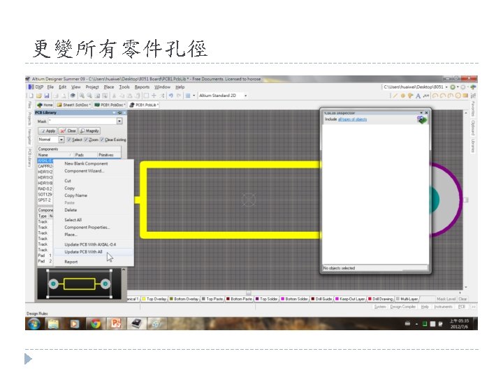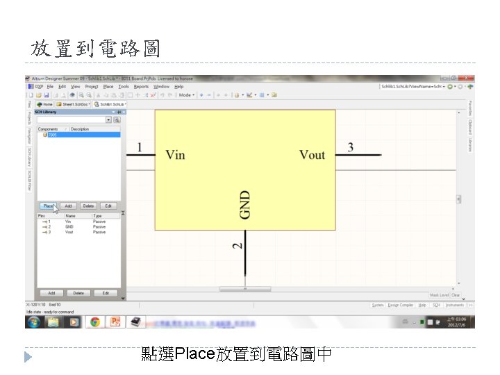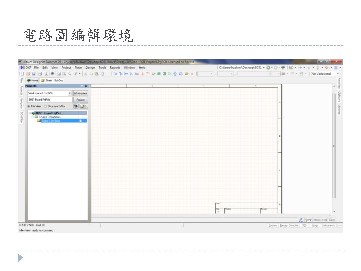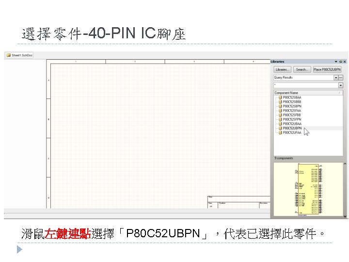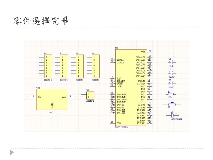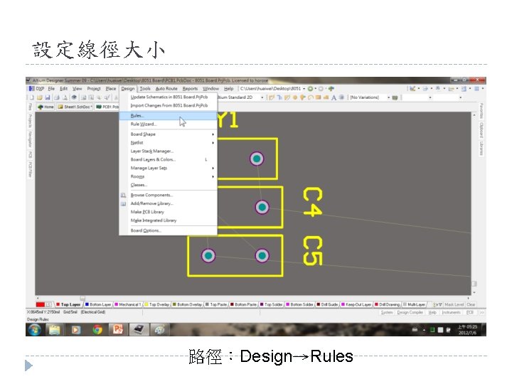 Altium Designer Summer 09 Altium Designer 1985 Protel Slides: 106 Download presentation Altium Designer Summer 09 Altium Designer歷史 � 1985年 Protel軟體誕生 � 2004年 Protel 2004 � 2005年 Altium Designer 6 � 2008年 Altium Designer Summer 08 � 2008年 Altium Designer Winter 09 � 2009年 Altium Designer Summer 09 � 2011年 Altium Designer 10 專案檔. Prj. Pcb建立 路徑:File→New→Project →PCB Project Projects面板區裡出現一個「PCB_Project 1. Prj. Pcb」專案 建立電路圖. Sch. Doc檔 路徑:File→New →Schematic 選擇零件 40 -PIN IC腳座 � Miscellaneous Devices. Int. Lib和Miscellaneous Connectors. Int. Lib兩個零件庫中並沒有40 -PIN IC腳座, 需使用搜尋功能。 零件搜尋 1. Operator欄位選擇contains 2. Value欄位輸入 80 c 52 3. Scope欄位點選Available libraries 4. 點選Search 建立零件庫 路徑:File→New →Library→Schematic Library 繪製PCB Layout圖 電路圖零件Footprint檢查-電阻R 1 對電阻R 1連擊,出現Component Properties對話框 電路圖零件Footprint檢查-穩壓IC VR 1 對穩壓IC連擊,出現Component Properties對話框 PCB Layout圖存檔. Pcb. Doc PCB Layout編輯環境 轉出電路圖至PCB Layout圖 路徑:Design→Update PCB Document PCB 1. Pcb. Doc 轉出電路圖至PCB Layout圖 點選Execute Changes檢查,匯入PCB Layout圖 設定線徑大小 路徑:Design→Routing→Width 設定孔徑大小 路徑:Designs→Make PCB Library PCB Layout 具 完成PCB Layout圖 輸出PCB Layout圖 路徑:File→Fabrication Outputs →Final