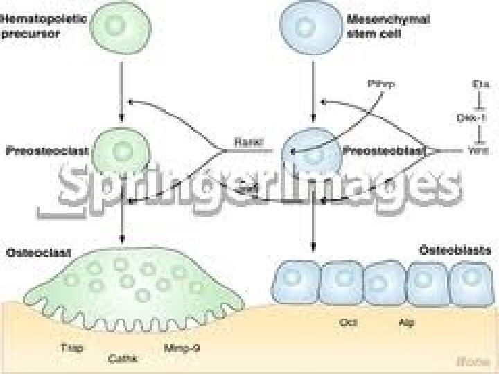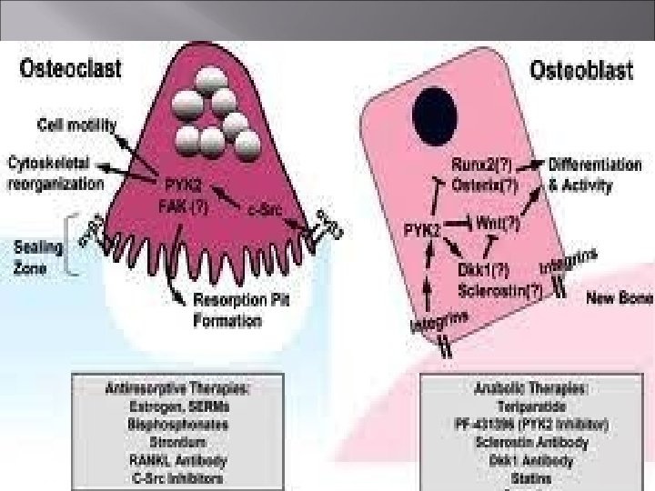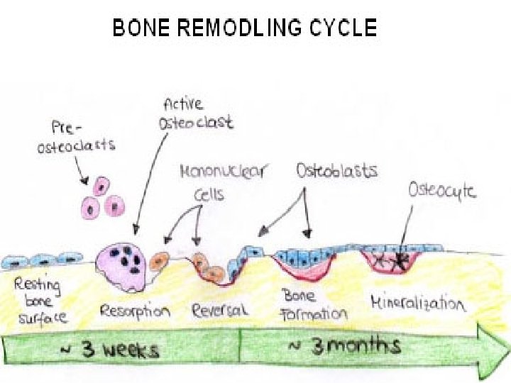 a. b. c. Cellular components Osteoblasts : they are cuboidal cells with well developed rough endoplasmic reticulum, a large golgi apparatus and secretory vesicles. Osteoclasts : they are cells responsible for resorption of bone. Osteocytes: oteoblast celll that has ceased activity and has become embedded in the bone matrix