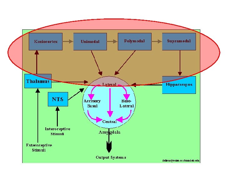 Amygdala és érzelmi információfeldolgozás • • Érzelmi ingerekre intenzív aktivitás Érzelmi válasz szervezése • • szívritmus, légzés, izomtónus, stb. Figyelmi funkciók modulálása Érzelmi emlékek szervezése Sérülése: Klüver-Bucy szindróma • Nem megfelelő érzelmi reakciók
